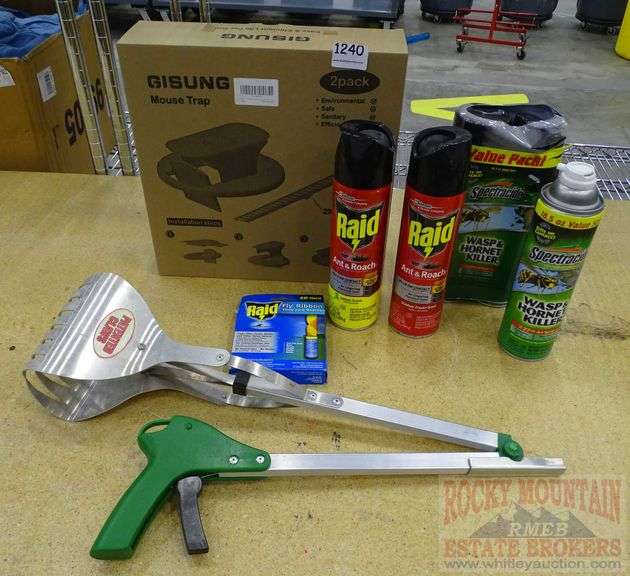LOT 746 - Gisung Mouse Trap, Raid Ant & Roach Killer, Pooper Scooper & More.
