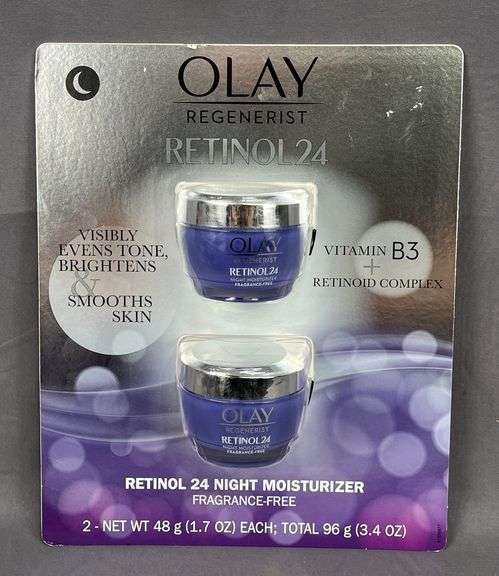 LOT 643 - 2 New 1.7 oz. Jars of Olay Retinol 24 Night Moisturizer. This is supercharged for smooth skin overnight!