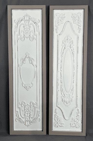 LOT 644 - 2 Framed White-Washed Architectural Panels, 36"x10". 2 times the money. Total price is quantity times bid price.