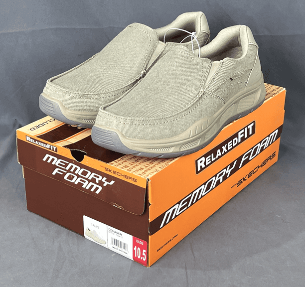 LOT 162 - Brand New Men's Skechers Size 10.5 Cohagen Memory Foam Slip-On Shoes.