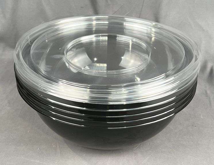 LOT 114 - 3 Brand New Plastic Catering Bowls W/ Lids. All for one money.