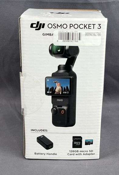 LOT 444 - Brand New DJI Osmo Pocket 3 Video Camera Bundle W/ 128 GB SD Card. This is a high-end camera that retails for $500. It is great for smooth video recording.