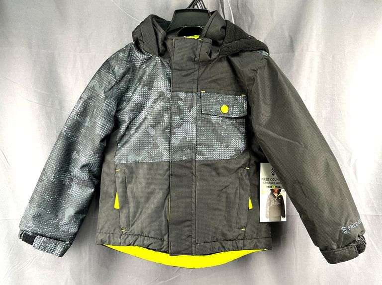 LOT 488 - Brand New Free Country Boy's Size 4/5, Black Wind & Water Resistant Snow Jacket W/ Hood & Fleece Lining.