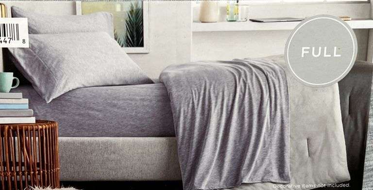 LOT 297 - Brand New Super Soft, Full-Size Grey Jersey Knit 4-Piece Sheet Set.