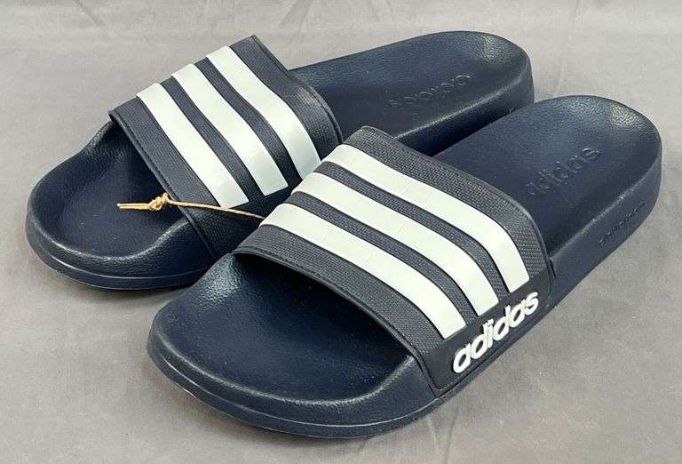 LOT 733 - Brand New Unisex -Men's Size 11, Ladies Size 12.5 - Blue Adidas Adilette Comfort Slides.