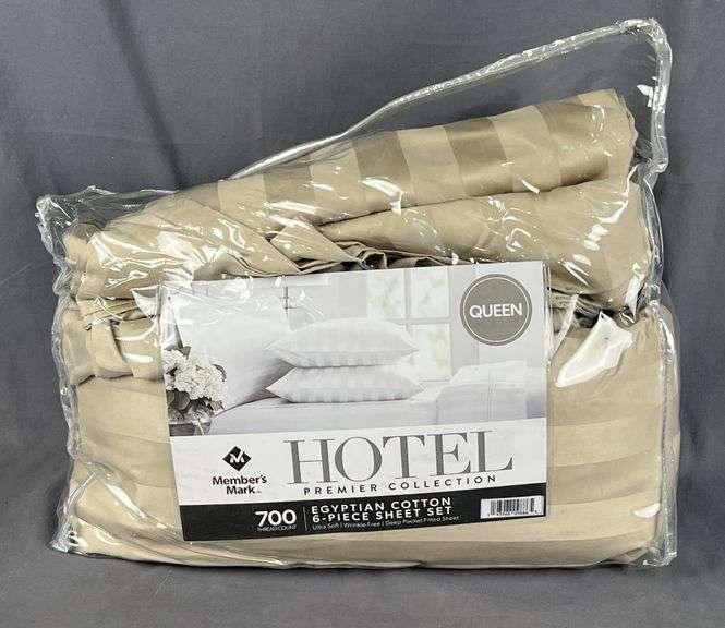 LOT 81 - Luxurious "Striped Fossil" Queen Size Hotel Premier Collection, 700 Thread Count 6-Piece Egyptian Cotton Sheet Set. This is complete & appears to be brand new - it just has a damaged package.