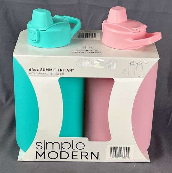 LOT 881 - 2 Brand New 64-Ounce Summit Tritan Water Bottles W/ Flip Straw Lid. This 2 color pack is durable, leak-proof & has ounce markers on the side for hydration tracking. Both for one money.