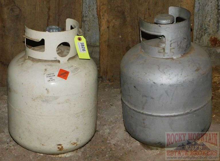 LOT 414 - 2 Propane Bottles. One Appears to have some contents and One Appears to have an Older Valve. Both for one money.