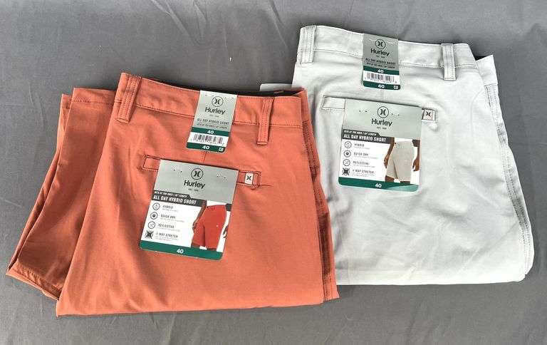 LOT 742 - 2 Brand New Men's Size 40 Hurley All Day Hybrid Shorts, "Redwood" and "Light Stone Grey". These hit at the knee/20" length. Hybrid to be worn in and out of water, they have a 4-way stretch and are quick dry. 2 times the money. Total price is quantity times bid price.
