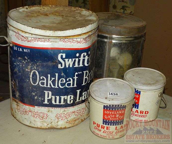 LOT 26 - 4 Asst. Vintage Lard Tins W/ Some Canning Jar Rings. All for one money.