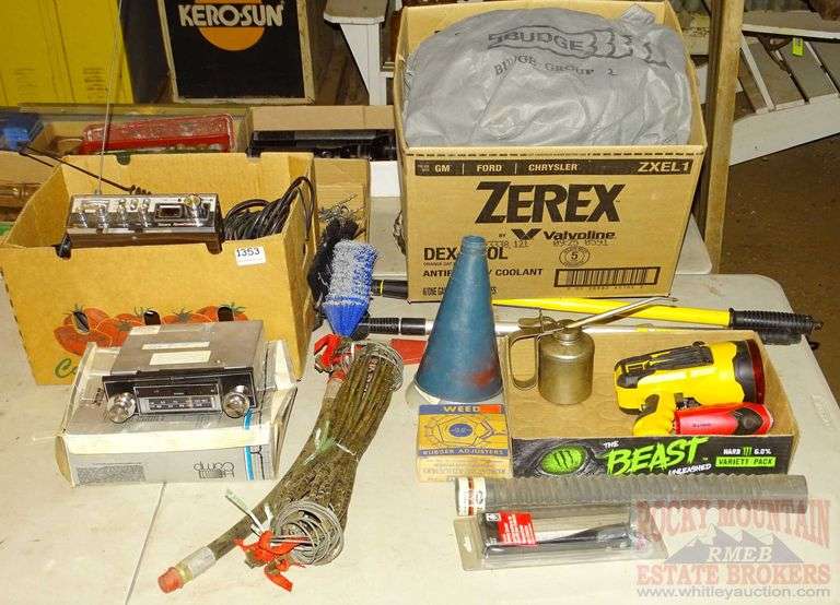 LOT 537 - Car Radios, Oil Can, Spot Light, Road Talker CB, Budge Car Cover & More. All for one money.