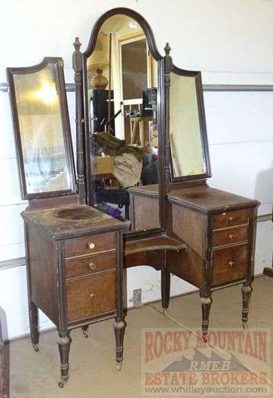 LOT 1168 - Vintage Drop Center Bat-Wing Vanity, Bat-Wings Need To Be Attached, 69"x46"x17".