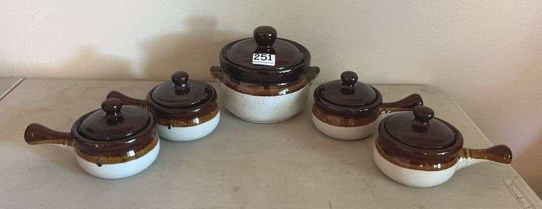 LOT 109 - Bean Pot with 4 Individual Serving Bowls. All for One Money.