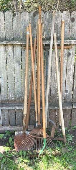 LOT 93 - Asst. Gardening Tools with Rakes, Hoes and Shovels and More. All for One Money.