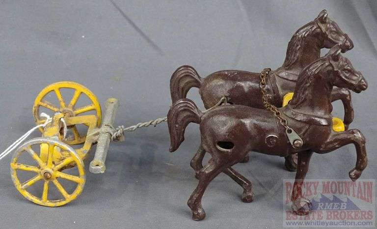 LOT 48 - Cast Iron Horse Team with Fore cart.