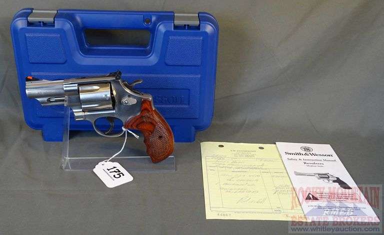 Smith & Wesson 629-5 Deluxe Special Edition stainless steel .44 Magnum 6-shot revolver W/ 3" barrel, satin stainless finish, checkered laminate grips, round butt, adjustable red ramp-white outline sights, forged hammer & trigger, paperwork & original factory hard case. Firearms Disclaimer: All transactions comply with state and federal firearms laws. Background checks will be conducted on all firearms. Read the full firearms terms in the "Terms" tab above.