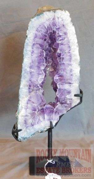 LOT 80 - 18" Unique Amethyst Geode Slice on Custom Black Metal Stand.
