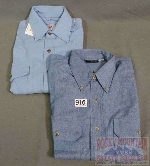 LOT 54 - 2 Brand New Men's Size Small, Tyndale Blue Button Up FR Shirts. Two times the money. Total bid is quantity times bid price.