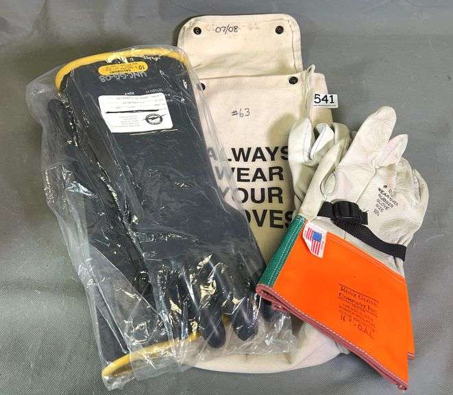 LOT 410 - Pair Of Salisbury Size 10.5 Class 2 Lineman's Gloves W/ Leather Glove Protectors & Canvas Bag. All for one money.