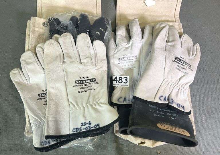 LOT 345 - 2 Pair Of Salisbury Size 10 GB 112 Lineman's Gloves W/ Leather Protectors & Canvas Bags. Both for one money.