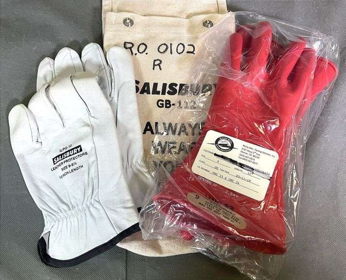LOT 264 - Pair Of Salisbury Size 9 GB 112 Lineman's Gloves W/ Leather Protectors & Canvas Bag.