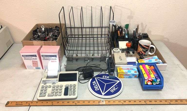 LOT 582 - Adding Machine, New Message Pads, Binder Clips, Highlighters & More. All For One Money.