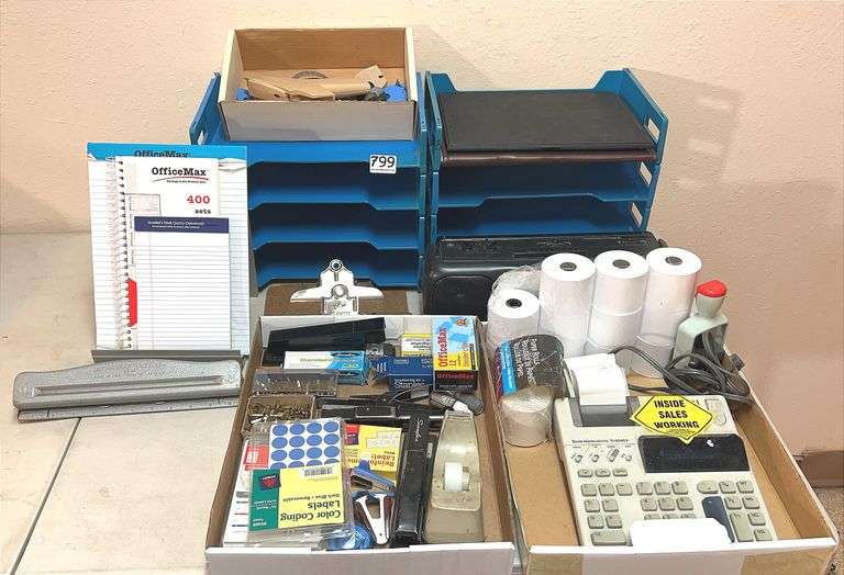 LOT 580 - Texas Instruments Adding Machine, Boom Box, Tagging Gun, Office Supplies & More. All For One Money.