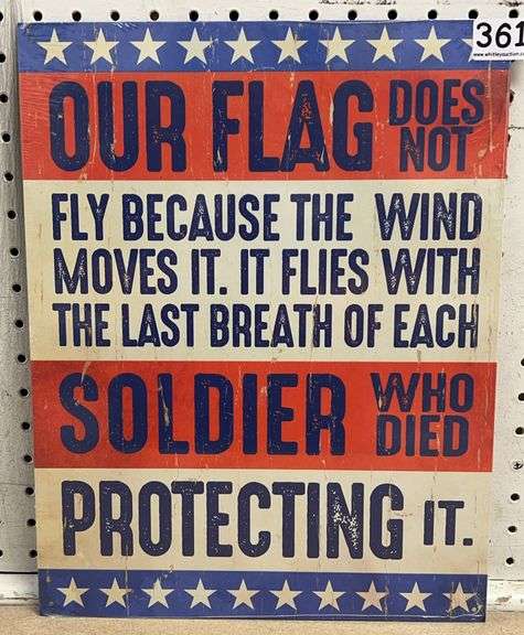 LOT 327 - Patriotic "Our Flag" Tin Sign. 16"x12.5".