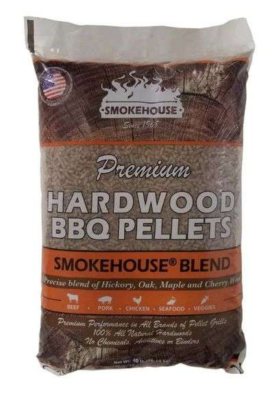 LOT 683 - Brand New 40 lb. Bag of Smokehouse Premium Hard Wood Pellets. Perfect for beef, pork, chicken, seafood, veggies & more.