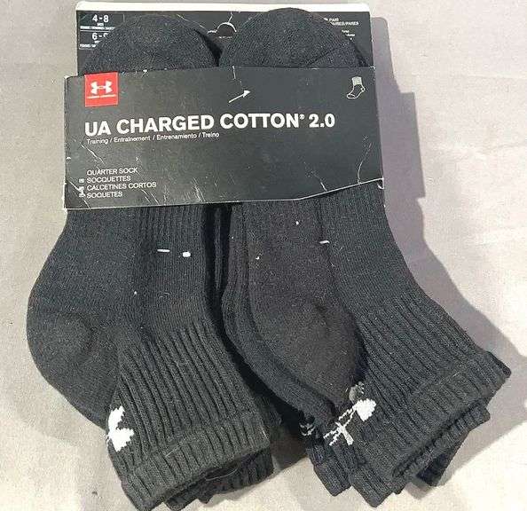 LOT 488 - Brand New 6 Pack of Men's Under Armour UA Charged Cotton 2.0 Quarter Socks.