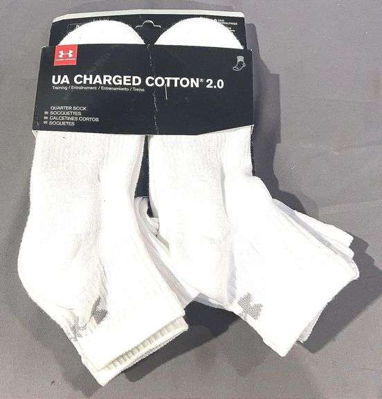 LOT 487 - Brand New 6 Pack of Men's Under Armour UA Charged Cotton 2.0 Quarter Socks.