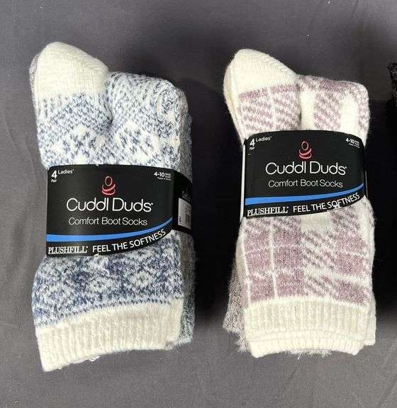 LOT 93 - 2 Brand New 4-Pair Packs of Ladies Cuddle Duds Super Soft Boot Socks. Fits shoe size 4-10. 2 times the money. Total price is quantity times bid price.
