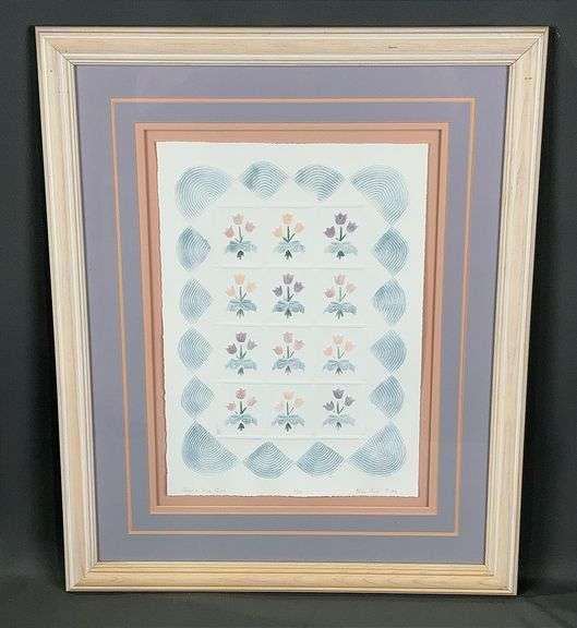 LOT 640 - Custom Framed & Triple Matted "Sarahs Tulip Quilt" Artist Signed & Number 3D Paper Art. 22"x18".