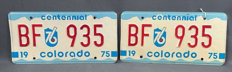 LOT 455 - 1975 Colorado Centennial License Plate Pair. both for one money.