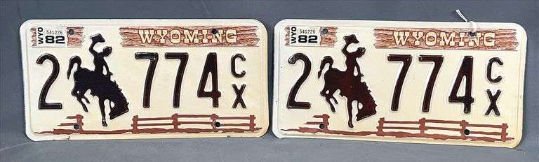 LOT 372 - Vintage 1983 Brown & Tan Wyoming License Plate Pair. 2 times the money. Total price is quantity times bid price.
