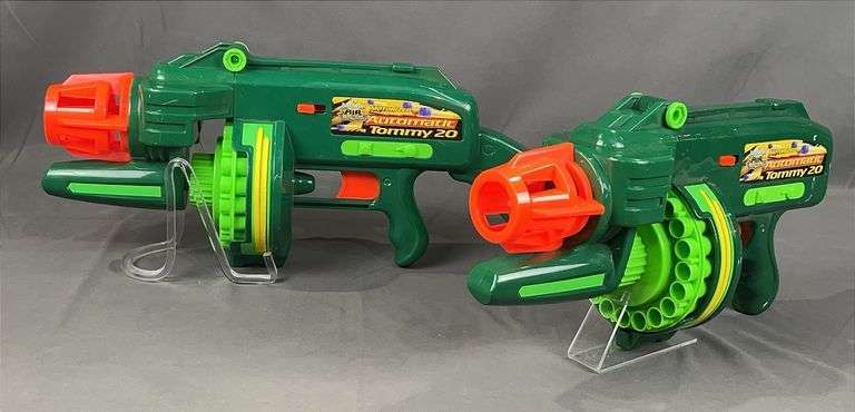 LOT 448 - 2 Buzz Bee Toys Motorized Automatic Tommy 20 Air Blasters. Both for one money.
