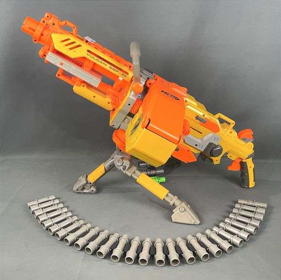 LOT 406 - Nerf N-Strike Vulcan EBF-25 Blaster W/ Ammo Belts, Ammo Box & Tripod.