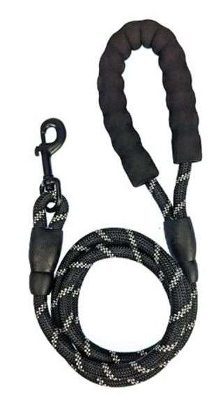 LOT 321 - Brand New Black Heavy Duty 5' Rope Leash W/ Comfortable Foam Grip & Made W/ Reflective Thread.