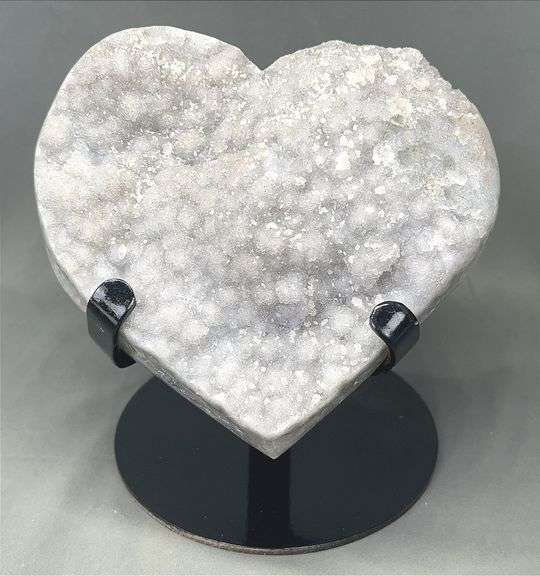 LOT 462 - Stunning Large 7" Druzy Agate Heart on Custom Cast Iron Stand.