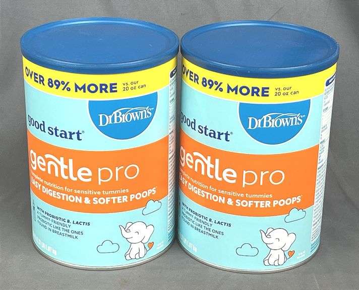 LOT 182 - 2 Brand New 38-Ounce Canisters of Dr. Brown's Good Start Gentle Pro Stage 1 Infant Formula with Probiotic B. Lactis - Great Probiotic for Easy Digestion. Recommended for babies 0-12 months. 2 times the money. Total price is quantity times bid price.